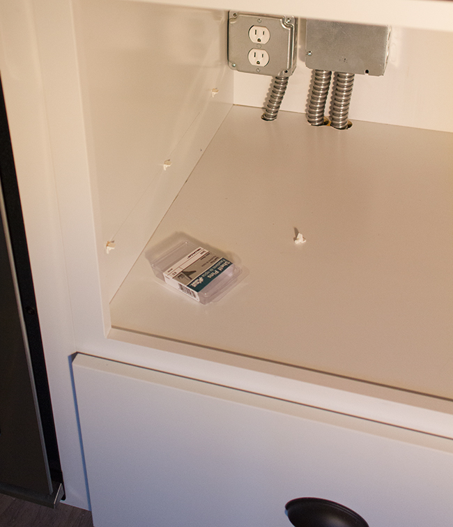 Now it really looks custom! And it makes the perfect storage cubby for my cutting board.