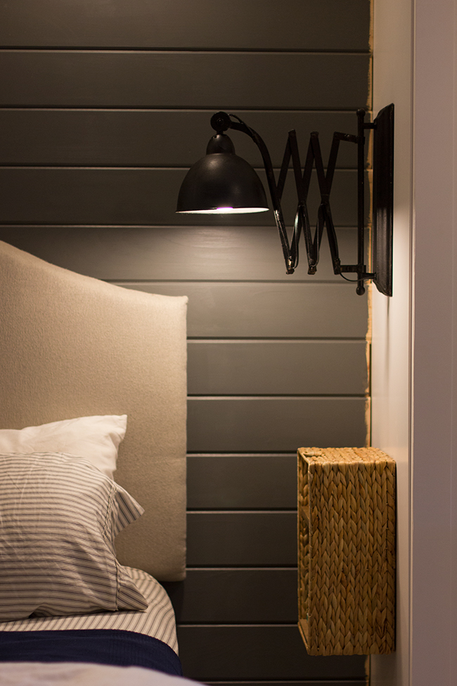 The final element to our bedside storage are these wire and canvas baskets I picked up from Walmart (for just $13/ea!)